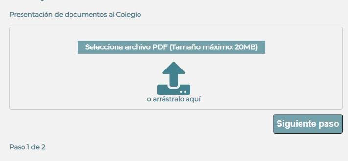 Es importante tener en cuenta que debe ser un archivo PDF de máximo 20 Mb.