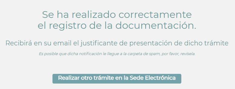 5-. Cuando llega la información al Colegio verá un mensaje de conformidad en la pantalla y le llegará un email de confirmación con el justificante de presentación en el Registro de Entrada y Salida del Colegio.